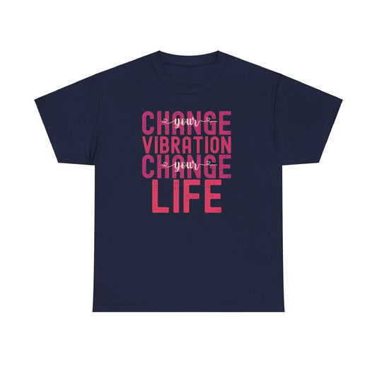 Change Your Vibration Change Your Life with pink hues (Gildan 5000 T-Shirt) for women and men