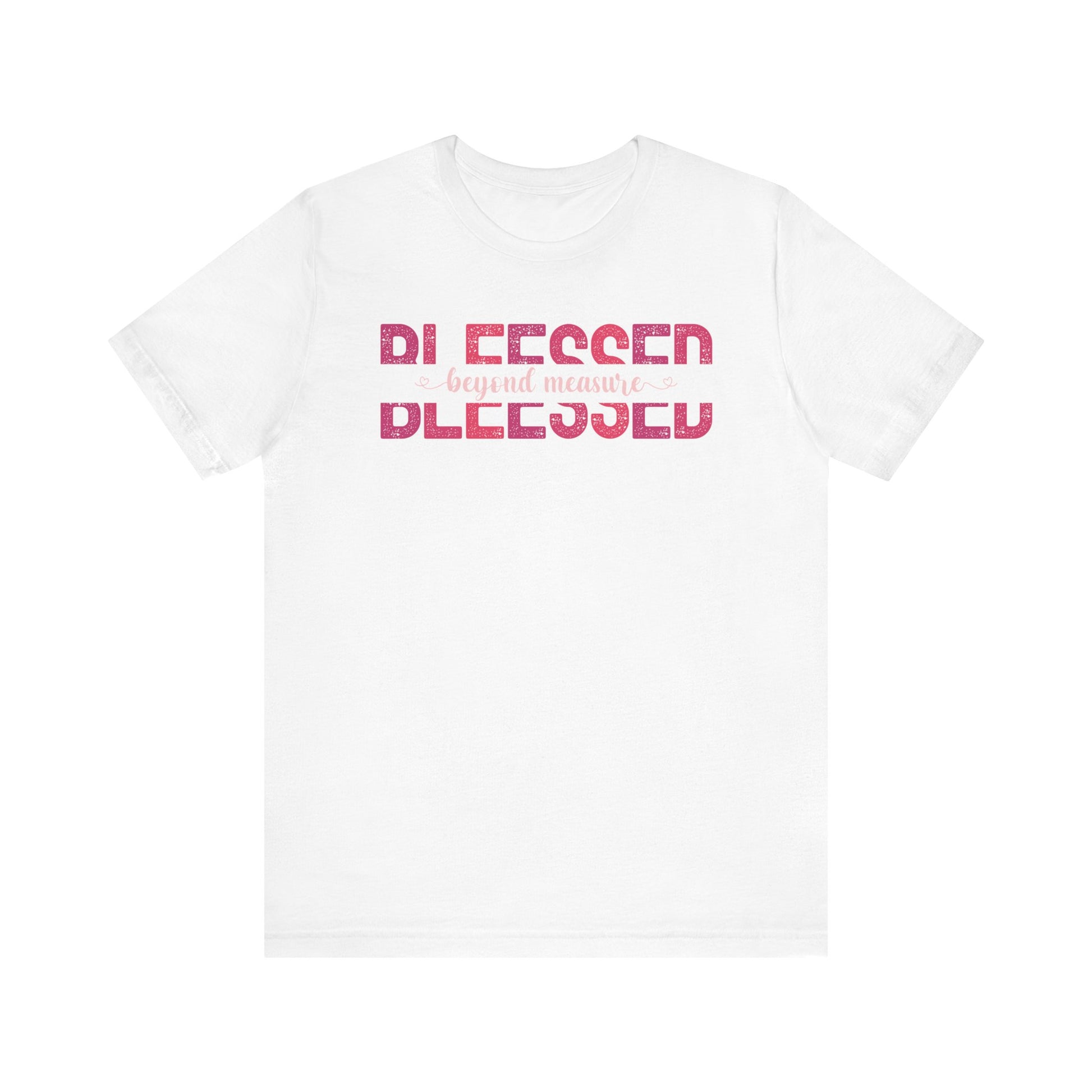 Blessed Beyond Measure with pink hues (Bella Canvas 3001 T-Shirt) for women and men