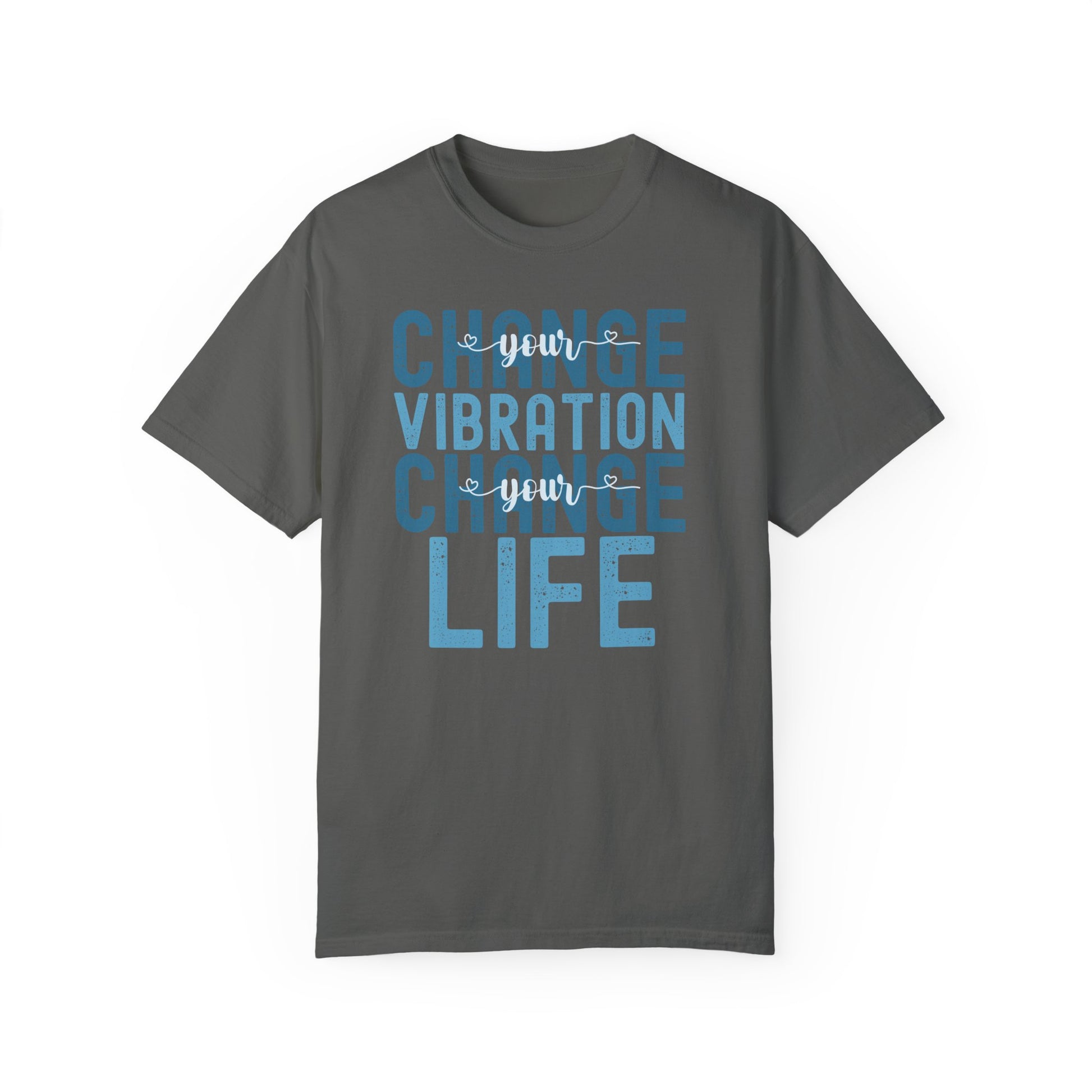 Change Your Vibration Change Your Life with blue hues (Comfort Colors 1717 T-Shirt) for women and men