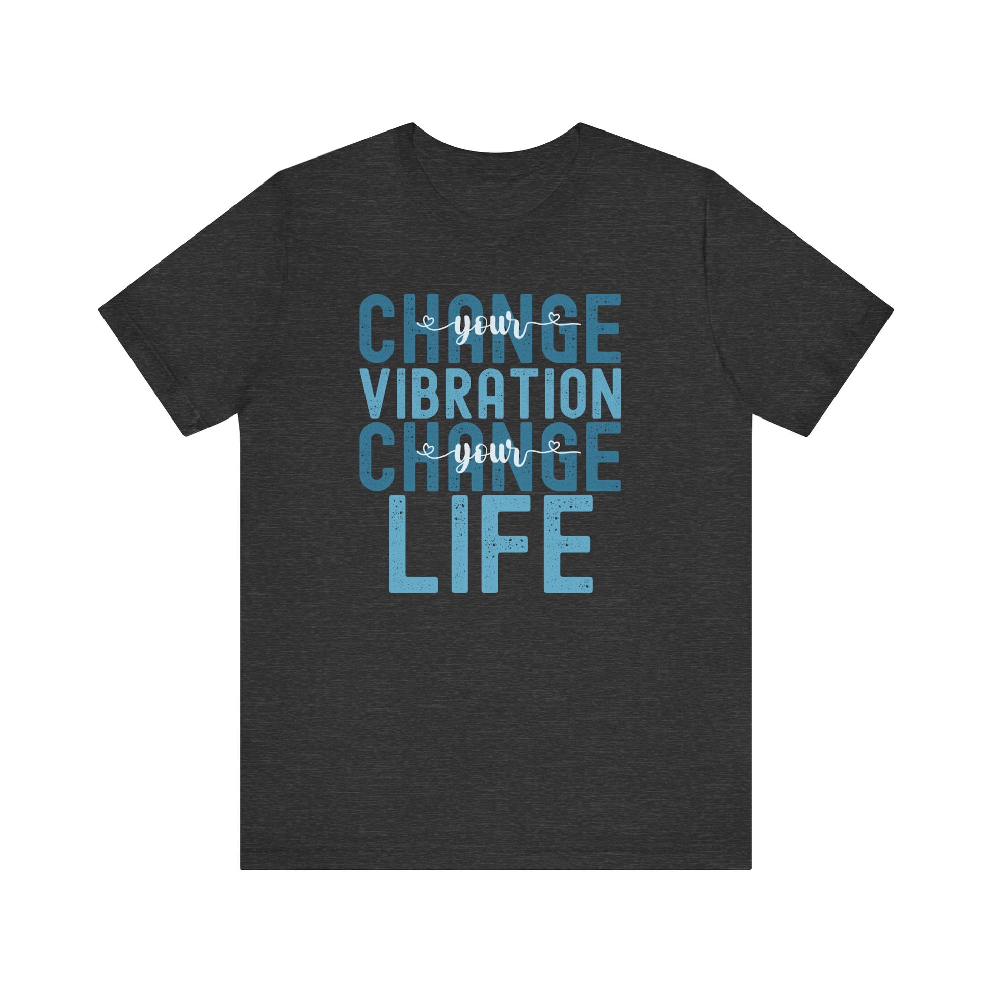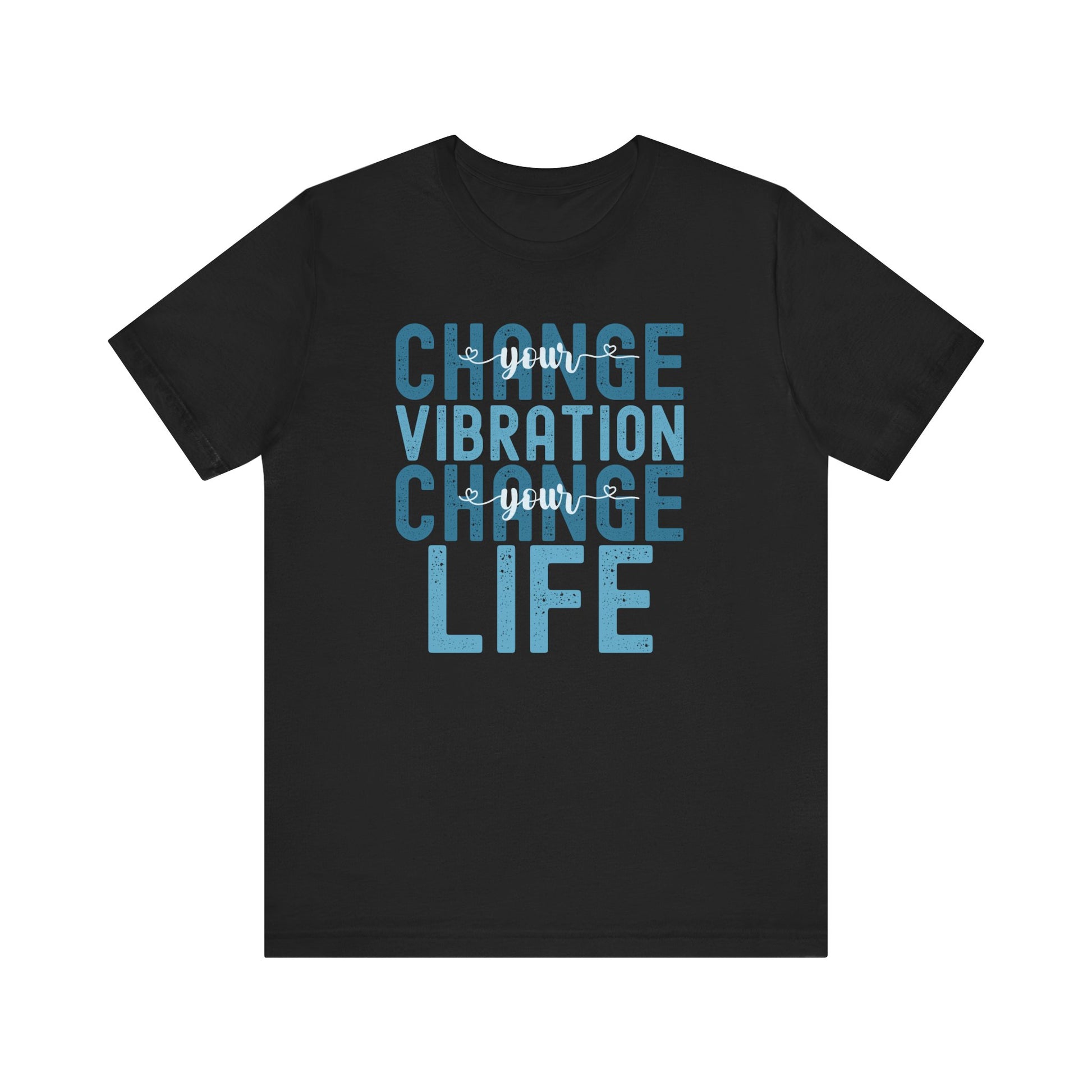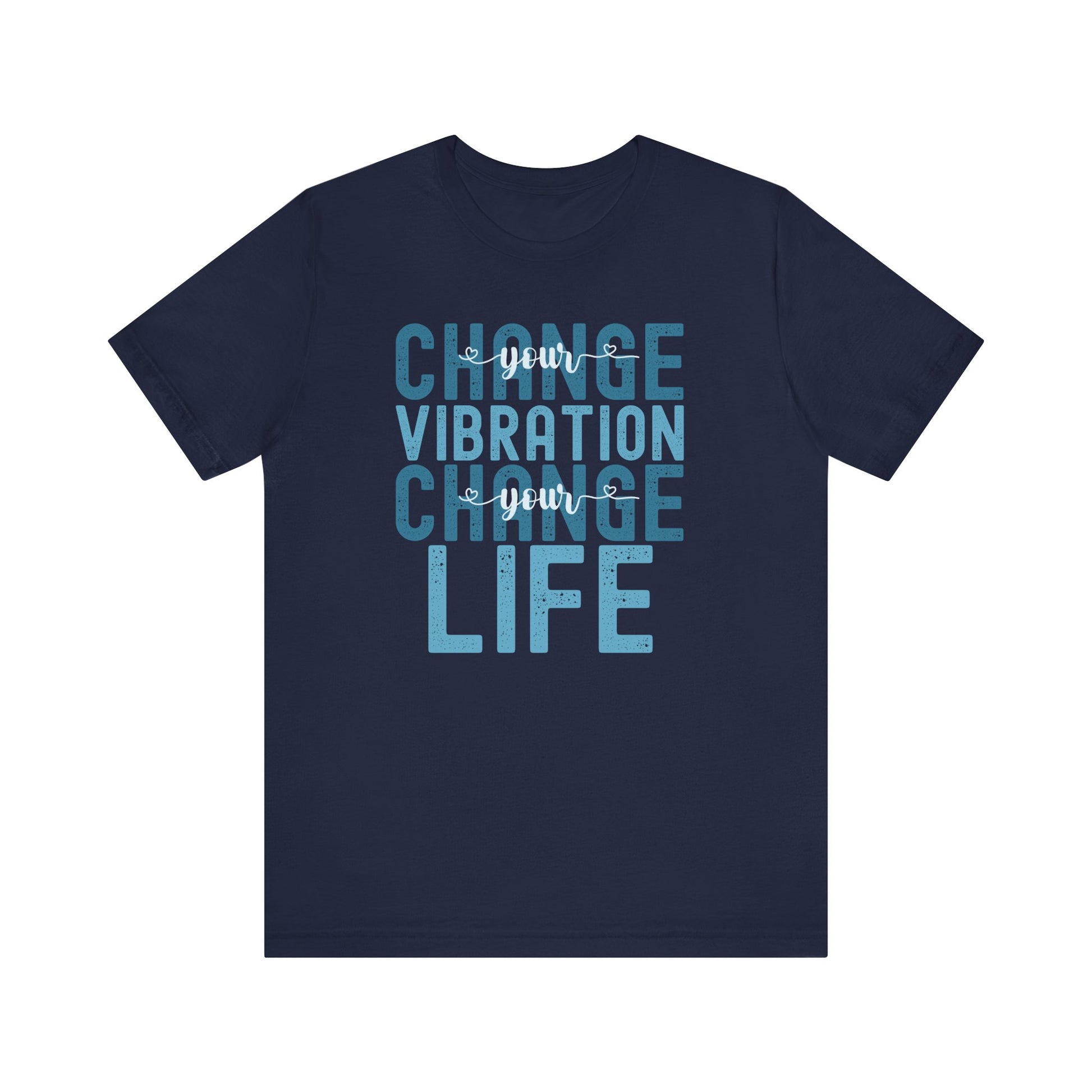 Change Your Vibration Change Your Life with blue hues (Bella Canvas 3001 T-shirt) for women and men