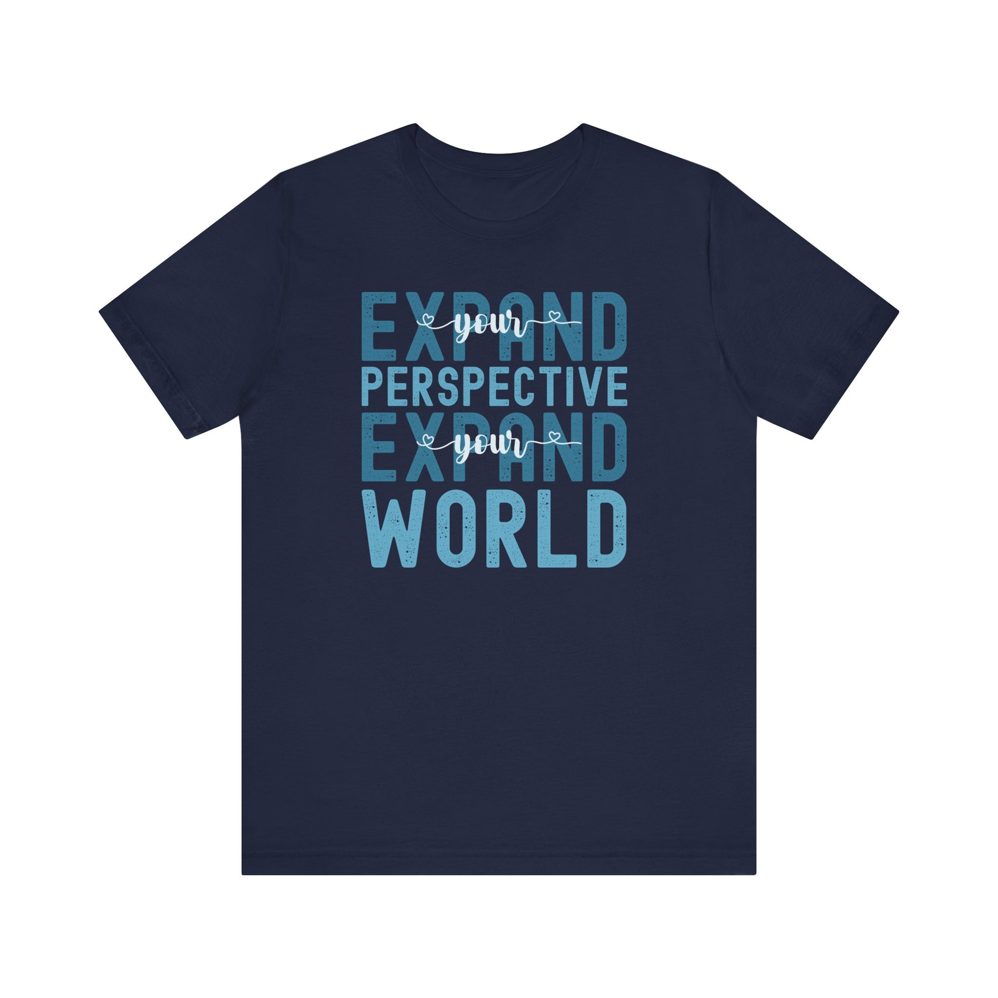 Expand Your Perspective Expand Your World with blue hues (Bella Canvas 3001 T-Shirt) for women and men