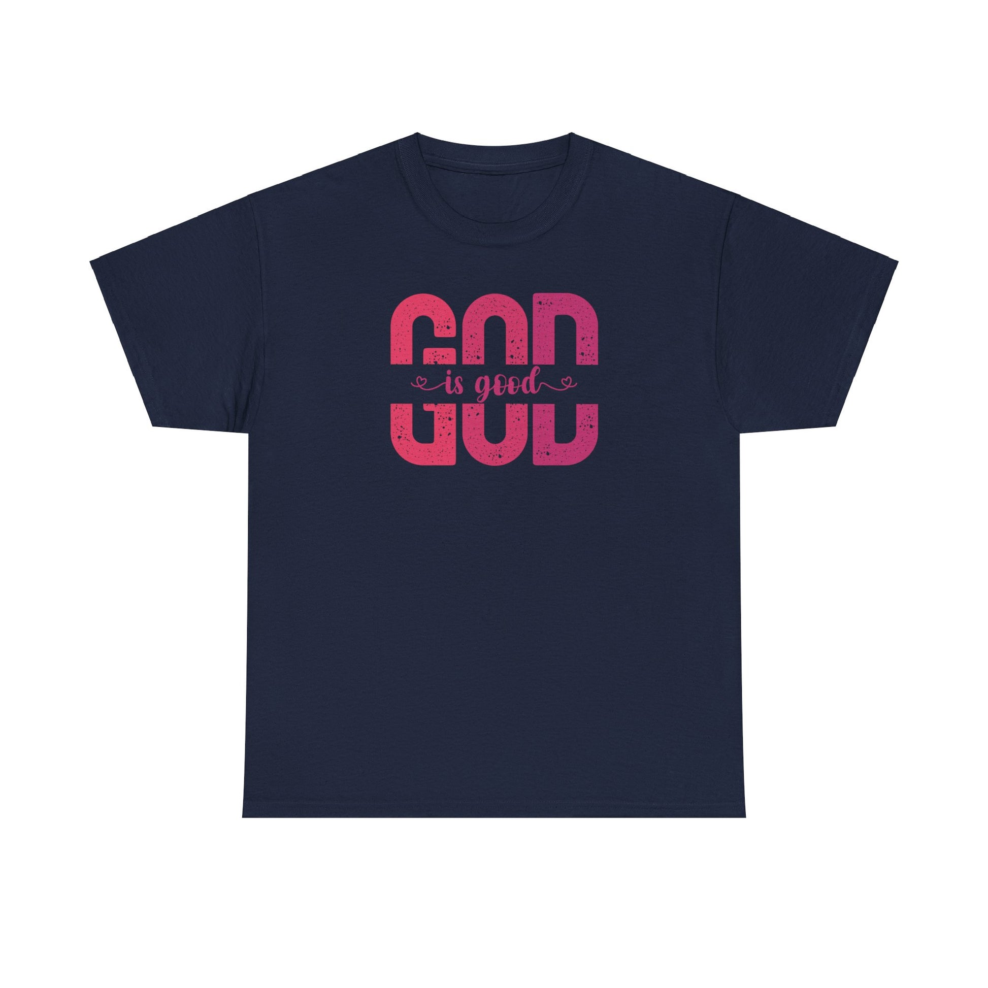 Stay stylish and show your faith with our "God is Good" Gildan 5000 traditional T-shirt. This classic fit tee is made of 100% cotton and has a comfortable feel. It comes in white, gray, navy, or black. The pink hues on the shirt symbolize God's goodness and spread joy and love. The material is sturdy and slightly rougher than other cotton tees, making it perfect for activities like working out at the gym or spending time outside in the sun. Our Gildan 5000 seamless sides T-shirt is available for express delivery.