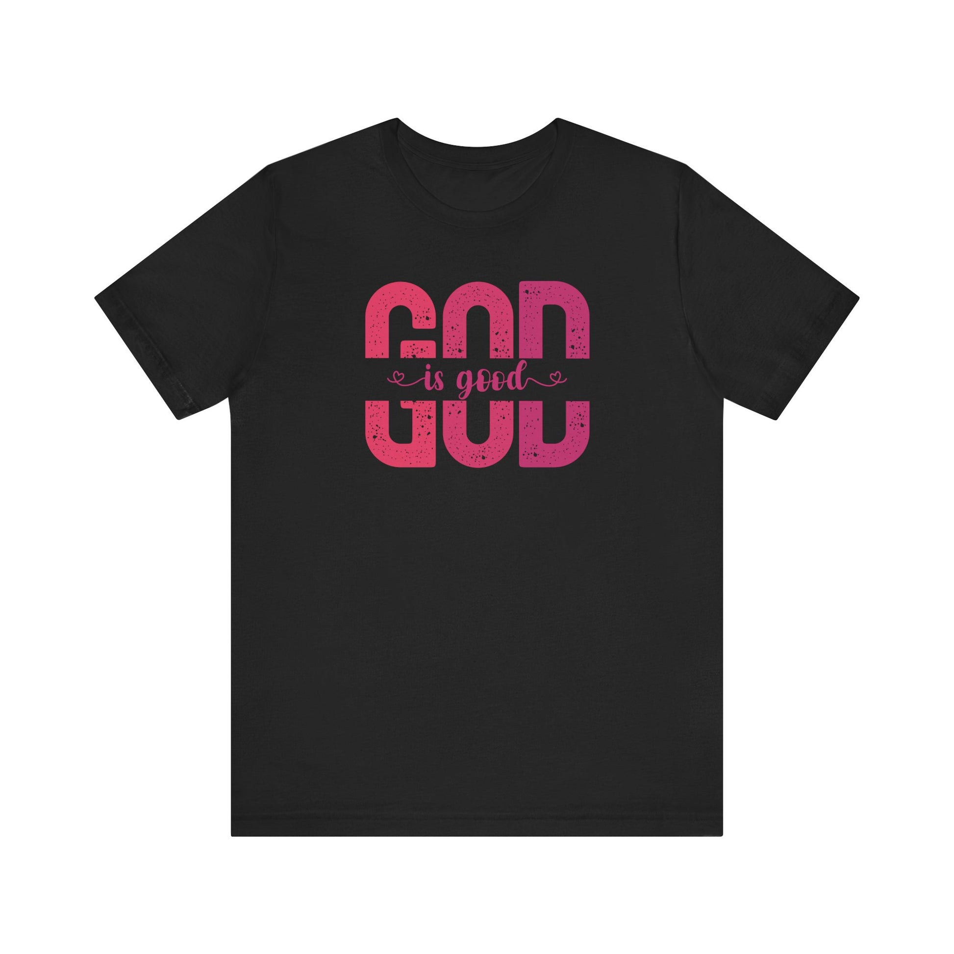 God is Good with pink hues (Bella Canvas 3001 T-Shirt) for women and men