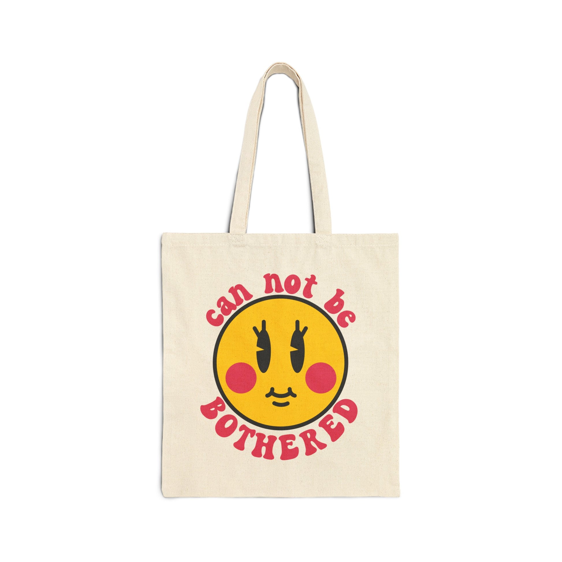 Can Not Be Bothered with Happy face 100% Cotton Canvas Tote Bag