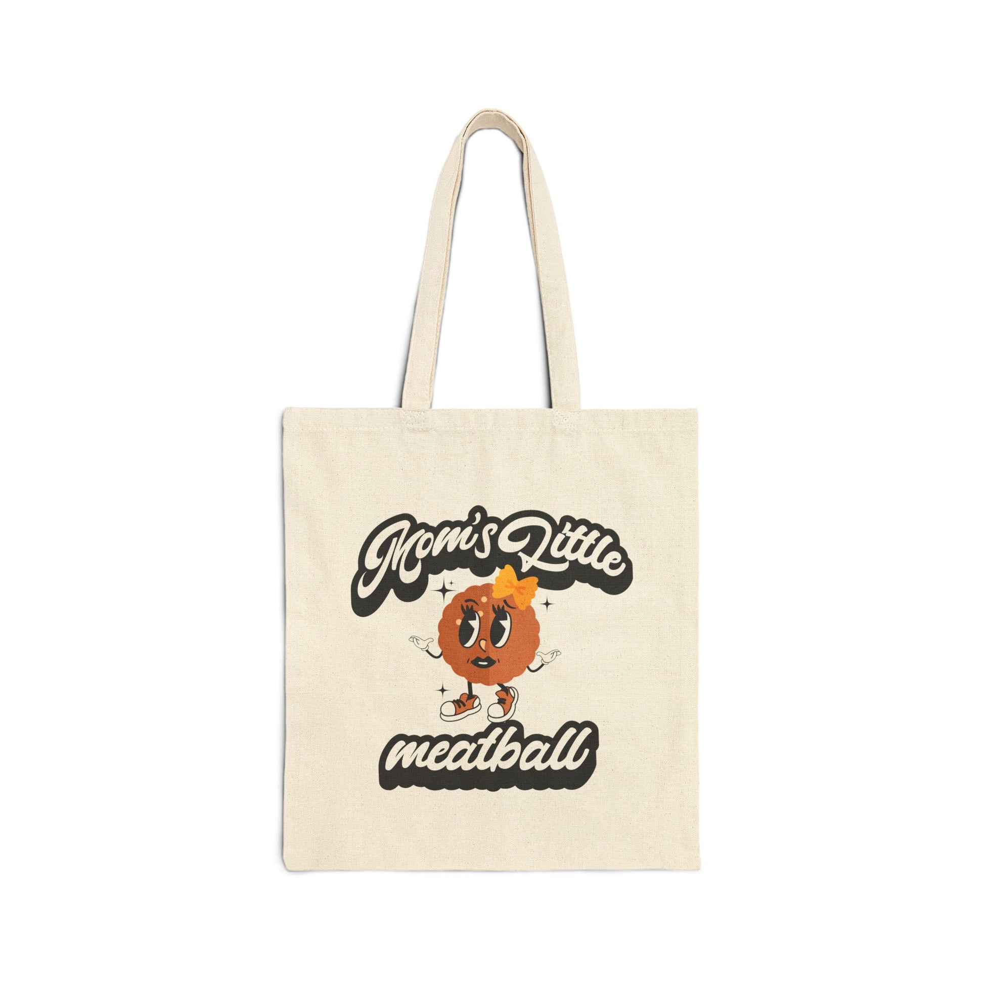 This durable and playful "Mom's Little Meatball" tote is perfect for grocery shopping. Made from 100% cotton canvas, it will fulfill your daily errands with a fun and endearing reminder of Mom's love.
