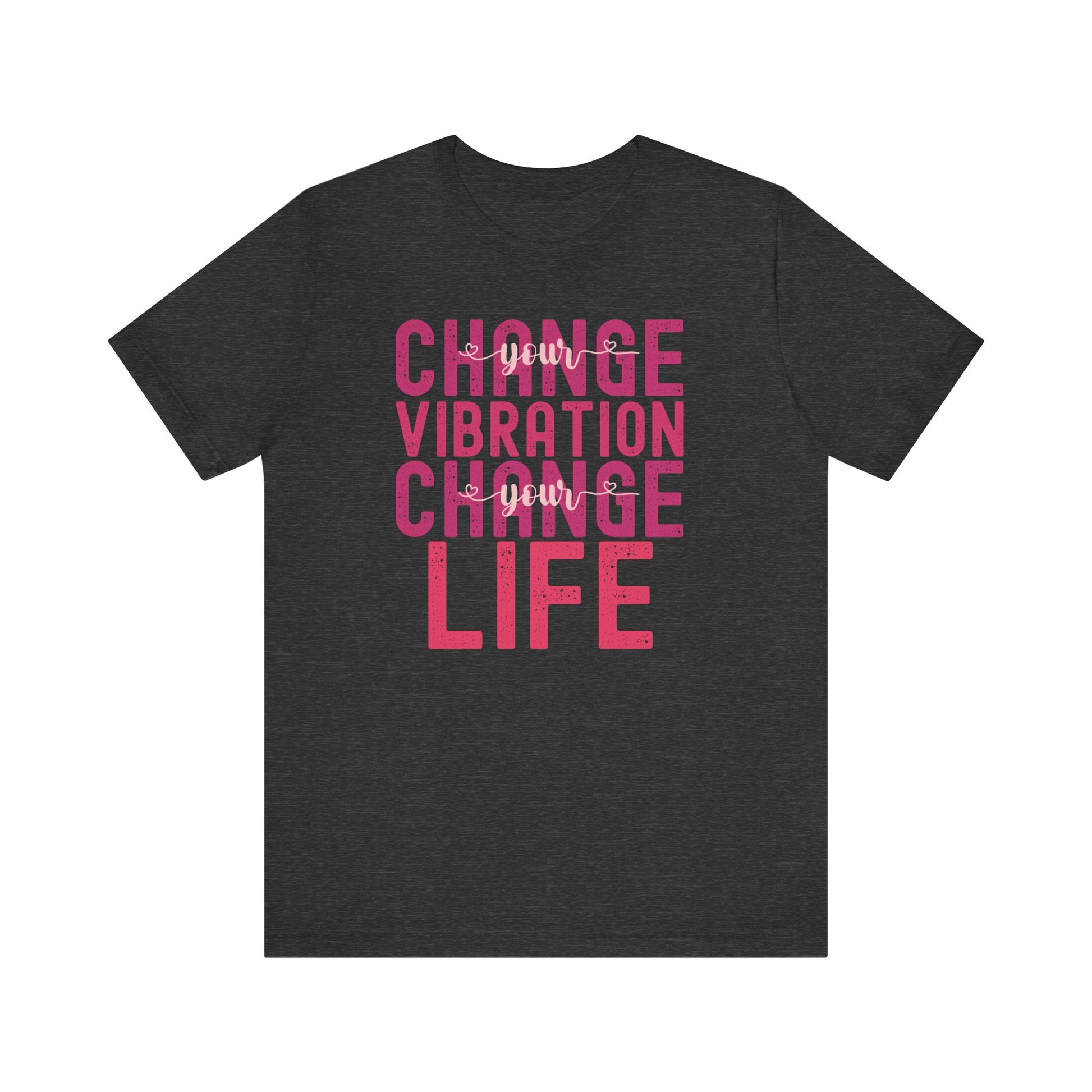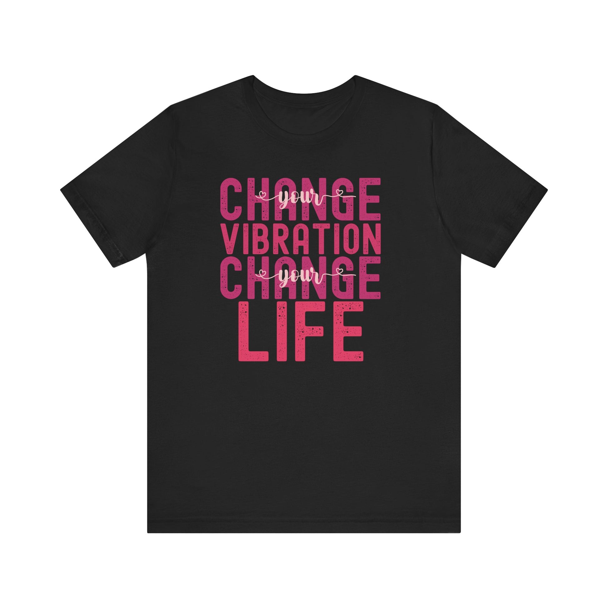 Change Your Vibration Change Your Life with pink hues (Bella Canvas 3001 T-Shirt) for women and men