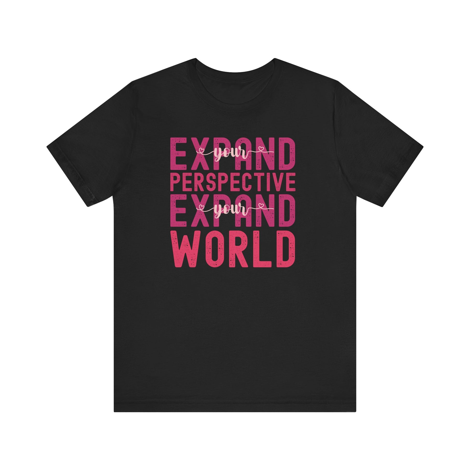 Expand Your Perspective Expand Your World with pink hues (Bella Canvas 3001 T-Shirt) for women and men